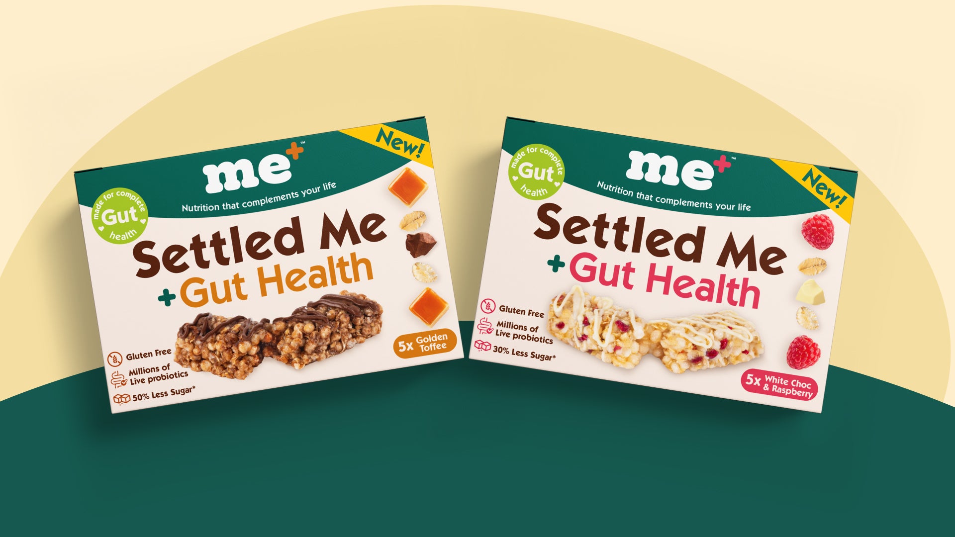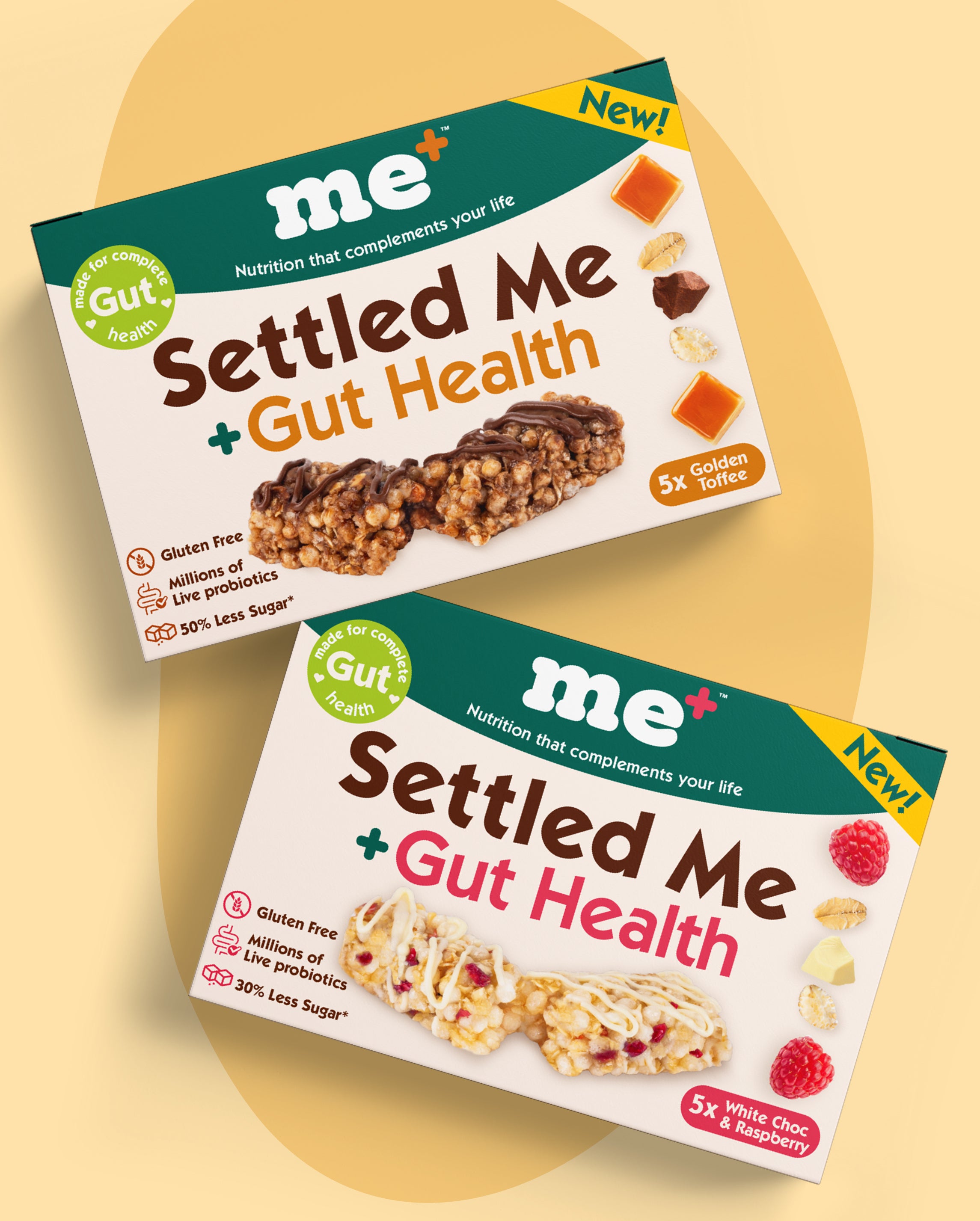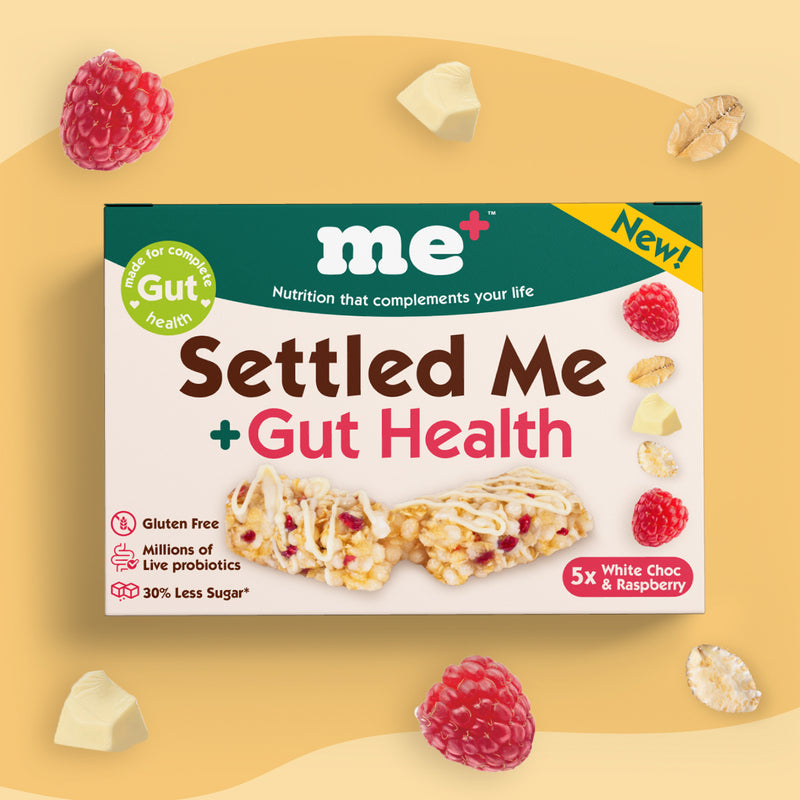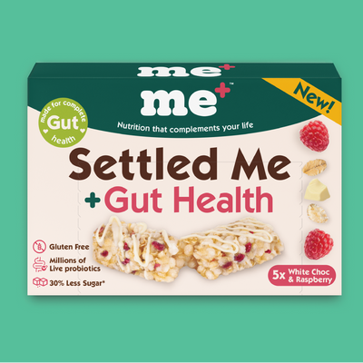 Settled Me+ is made with prebiotic fibre and live cultures to support digestion, reduce bloating, and help bring your body back into balance.